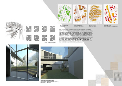 The roof layout shows an interesting manipulation of material and small openings that enhances the manipulation of natural light. Large openings on the roof emphasizes the main entrances. The layout of the roof was related to the spaces in the interior of the building.